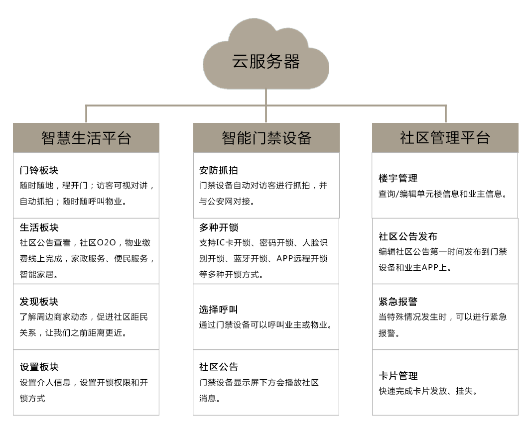 以現(xiàn)代生活使用頻率最高的手機(jī)代替室內(nèi)機(jī),業(yè)主可以隨時(shí)隨地與小區(qū)入口崗?fù)ぁ? 單元門口的訪客進(jìn)行可視通話,進(jìn)行放行確認(rèn)、抓拍等一系列操作;門口機(jī)包括含人 臉識(shí)別及云端數(shù)據(jù)對(duì)比功能,可對(duì)治安重點(diǎn)關(guān)注人員進(jìn)行有效監(jiān)管