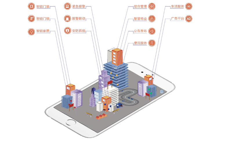 智慧社區(qū)是利用物業(yè)網(wǎng)、云計(jì)算、移動(dòng)互聯(lián)網(wǎng)、OTO等新一代信息技術(shù),集成了 智能樓宇、智能家居、智慧物業(yè)、智能安防、數(shù)碼生活等諸多領(lǐng)域的功能,將物業(yè)服 務(wù)、信息通知、物業(yè)繳費(fèi)、周邊商鋪、社區(qū)活動(dòng)、社區(qū)圈子等諸多生活幫助信息以及 服務(wù)整合為同一平臺(tái),為社區(qū)居民提供一個(gè)安全、舒適、便利、低碳的現(xiàn)代化社區(qū)生 活環(huán)境