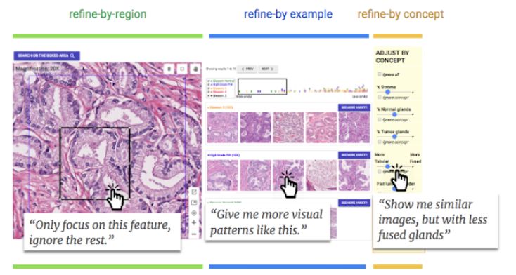 谷歌AI最近分享了兩篇研究論文,描述了在醫(yī)療保健領(lǐng)域類似圖像搜索的人機(jī)交互研究進(jìn)展。在第一篇題為《SMILY: 組織病理學(xué)的相似圖像搜索》的論文中,他們描述了一個基于ML的工具,用于病理學(xué)中的反向圖像搜索。第二篇論文《醫(yī)療決策過程中,以人為中心處理不完美算法的工具》探索了基于圖像搜索的不同細(xì)化模式,并評估了它們對醫(yī)生與SMILY交互的影響。